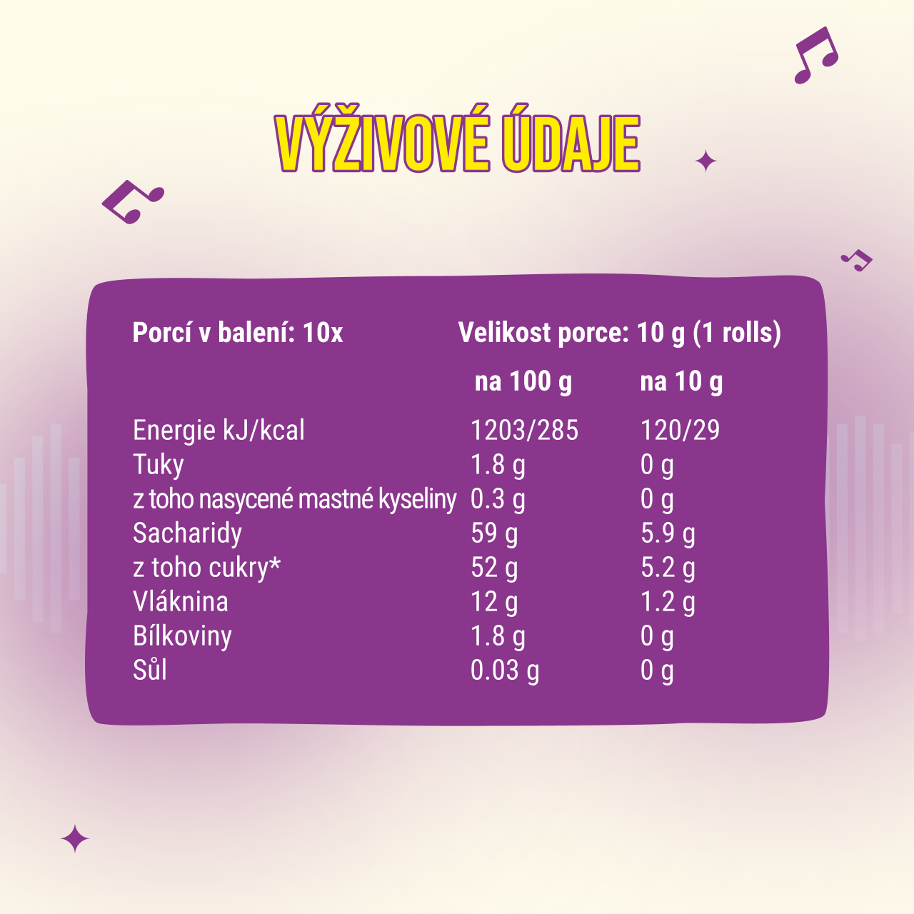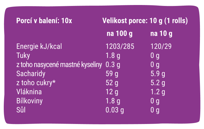 – Dva ovocné rolky (bez přidaného cukru a bez zbytečností – jen ovoce a lesní plody)