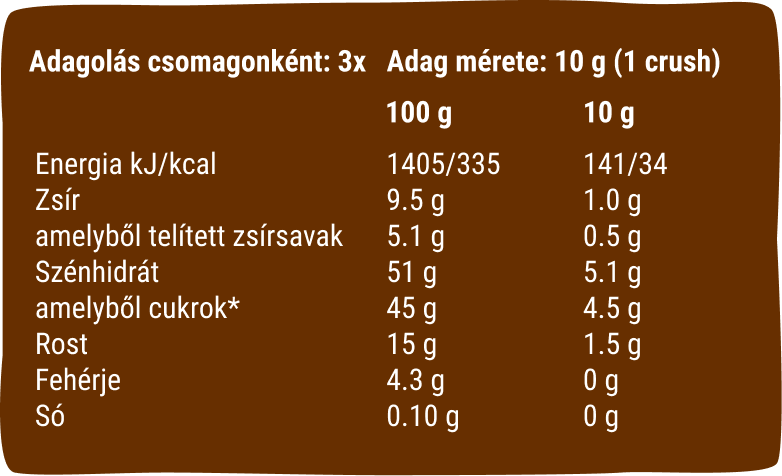 Intenzív gyümölcsös íz, csábító csokis aromával. O-o-olyan finom, hogy nehéz neki ellenállni – de miért is kellene? Tökéletes alternatíva a hagyományos édességeknek, amit mindenki élvezhet!