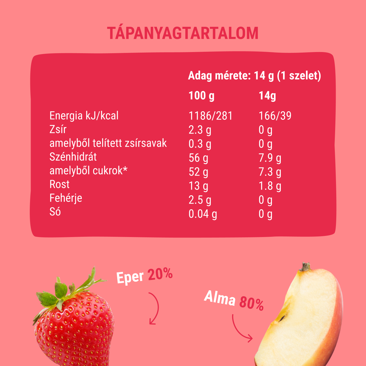 Mindegyik gyümölcsszelet külön van csomagolva – dobd be a zsebedbe, uzsonnás dobozba vagy a hátizsákodba. Nassolj iskolában, munkahelyen, kirándulás közben vagy edzés után.