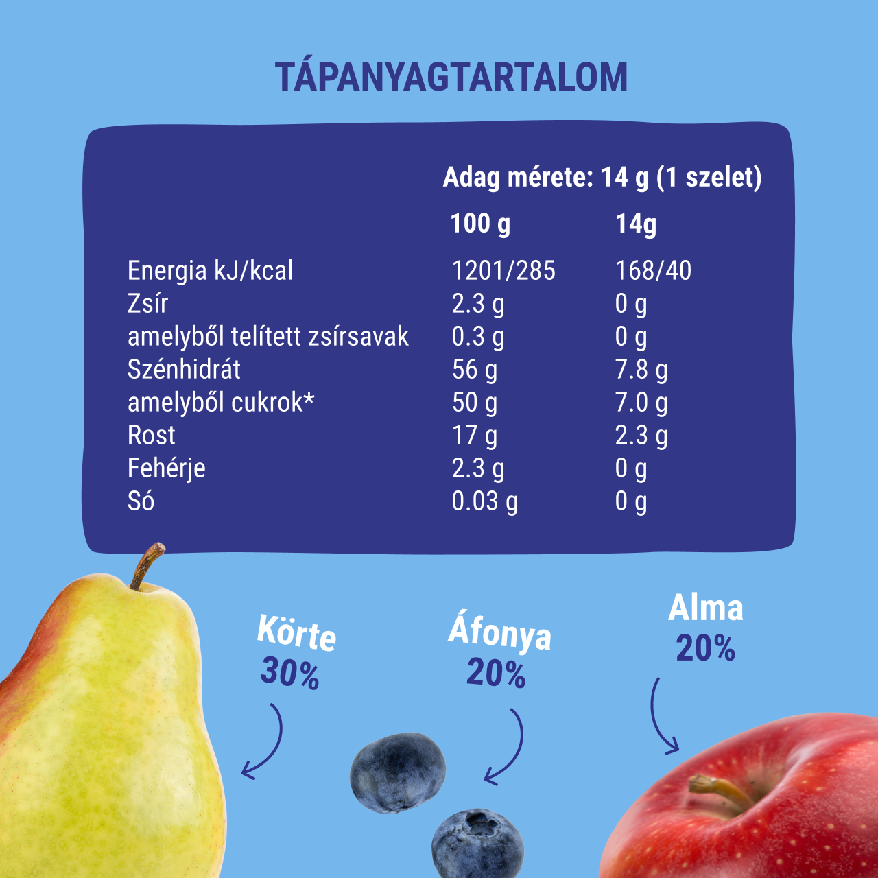 Mindegyik gyümölcsszelet külön van csomagolva – dobd be a zsebedbe, uzsonnás dobozba vagy a hátizsákodba. Nassolj iskolában, munkahelyen, kirándulás közben vagy edzés után.