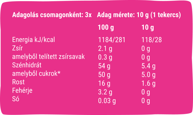 Könnyen magaddal viheted – pont beleillik az uzsonnásdobozba, sporttáskába, kocsiba vagy hátizsákba. És a fogyasztásuk igazi móka! Tépj belőle, harapj bele, vagy tekerd ki lassan, hogy tovább tartson a gyümölcsös élvezet! |
