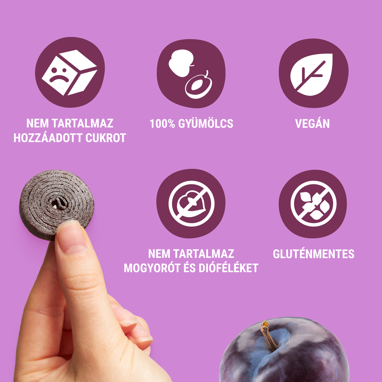 A gyümölcs tekercsek természetes és tápláló finomságok valódi gyümölcsből – nem tartalmaznak hozzáadott cukrot, tartósítószert, mesterséges színezéket vagy aromát. Gyerekeknek és felnőtteknek is egészséges nassolnivaló – iskolában, munkában vagy útközben.