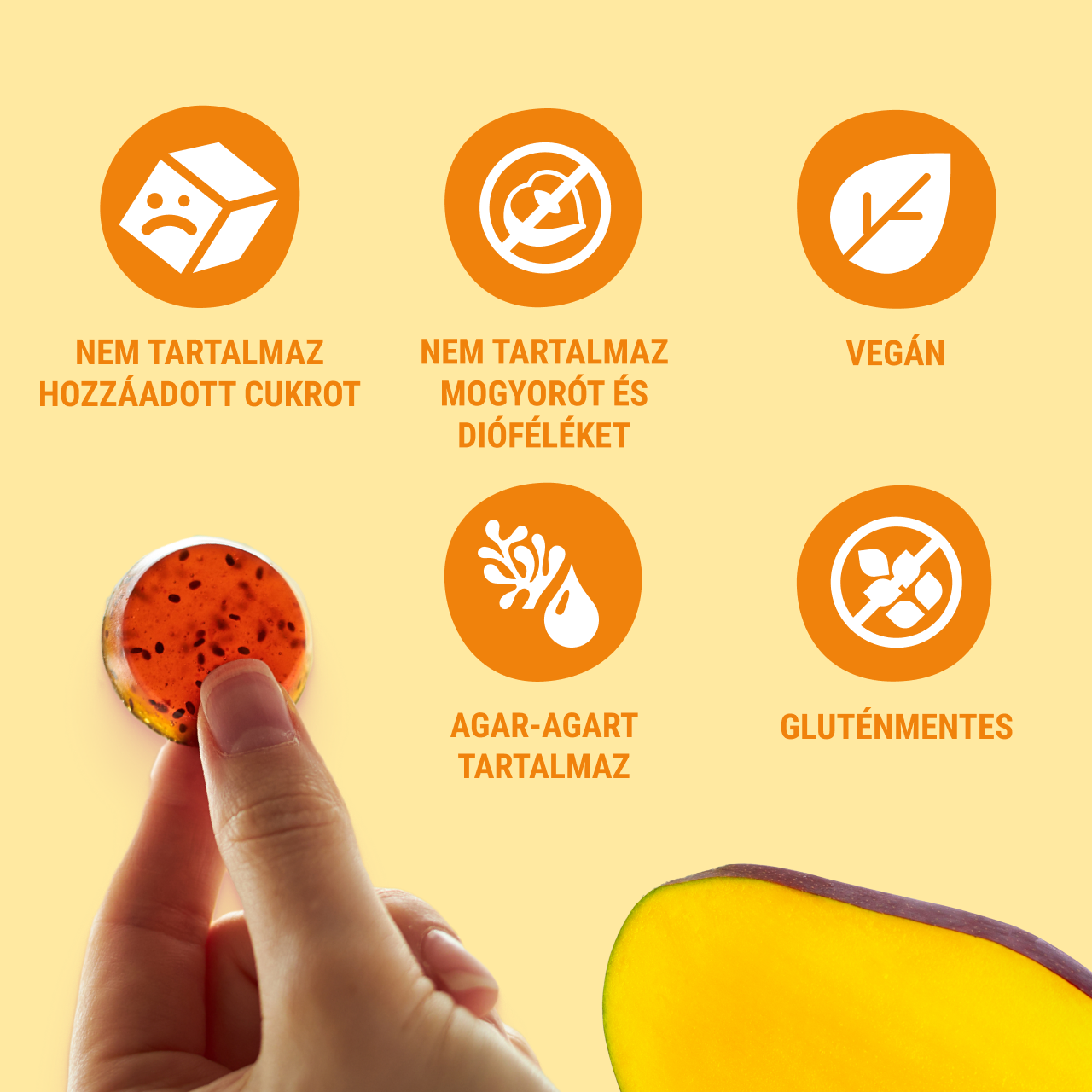 Természetes, sűrített gyümölcsléből készült gumicukor – nincs benne hozzáadott cukor, zselatin, glutén. Agaragarral sűrítve – 100%-ban vegán, egészségesebb alternatíva hagyományos édességeknek.