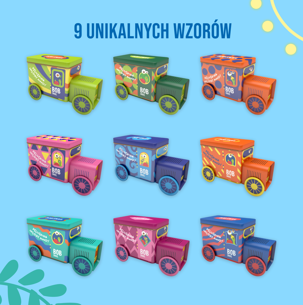 Zapraszam Cię w podróż, której nie można zarezerwować w żadnym biurze podróży na świecie! Wymyśliłem 9 wzorów głównego wagonu Fruit Start, z którego rozpoczyna się Bob Snail Express. Każdy wagonik przewozi prezenty dla Ciebie i Twoich bliskich.
