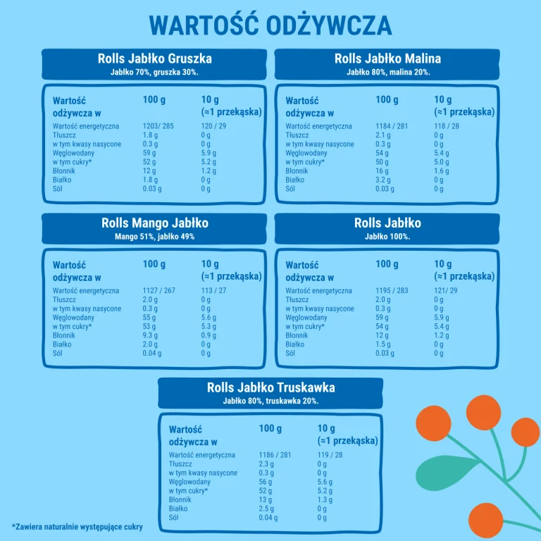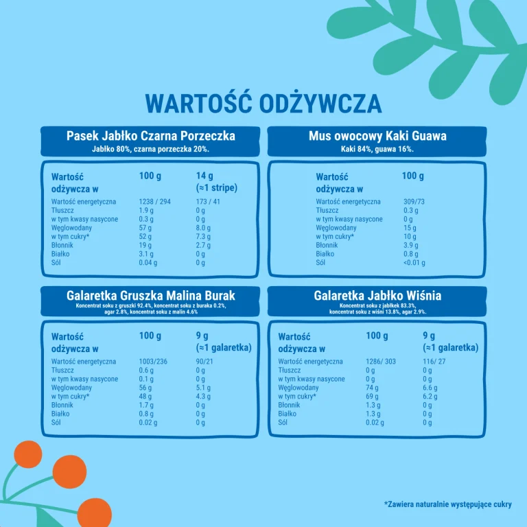 – owocowe smakołyki bez dodatku cukru — rollki, galaretki, paski i smoothie,