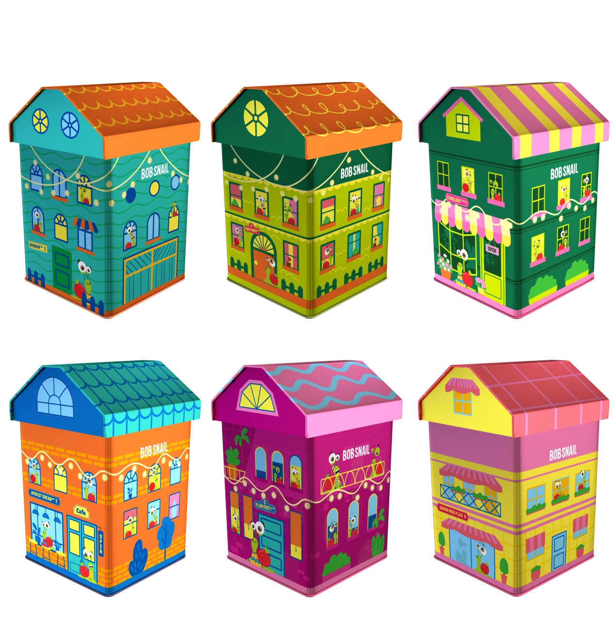 Snail City to kolekcja sześciu metalowych domków wypełnionych smakołykami i niespodziankami. Każdy z nich ma wyjątkowy wzór oraz tabliczkę z nazwą ulicy. Domki doskonale sprawdzają się do zabawy, a także jako pudełka do przechowywania smakołyków, drobiazgów, kawy czy herbaty.