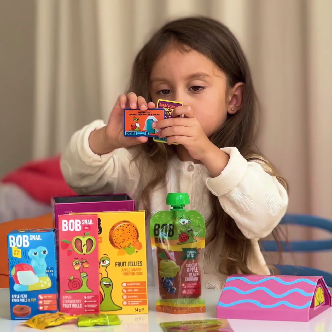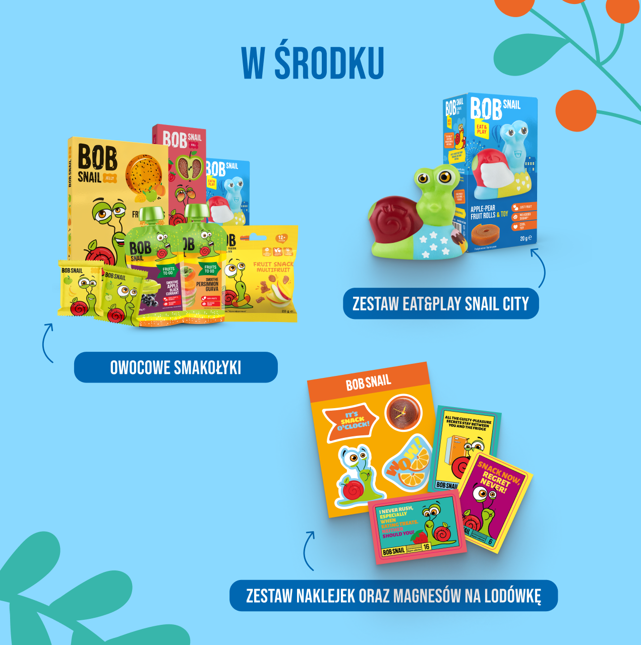 Snail City to kolekcja sześciu metalowych domków pełnych smakołyków i niespodzianek. W środku: owocowe smakołyki bez dodatku cukru, zestaw Eat&Play Snail City z kolekcjonerską zabawką, pakiet naklejek 3D oraz trzy zabawne magnesy.