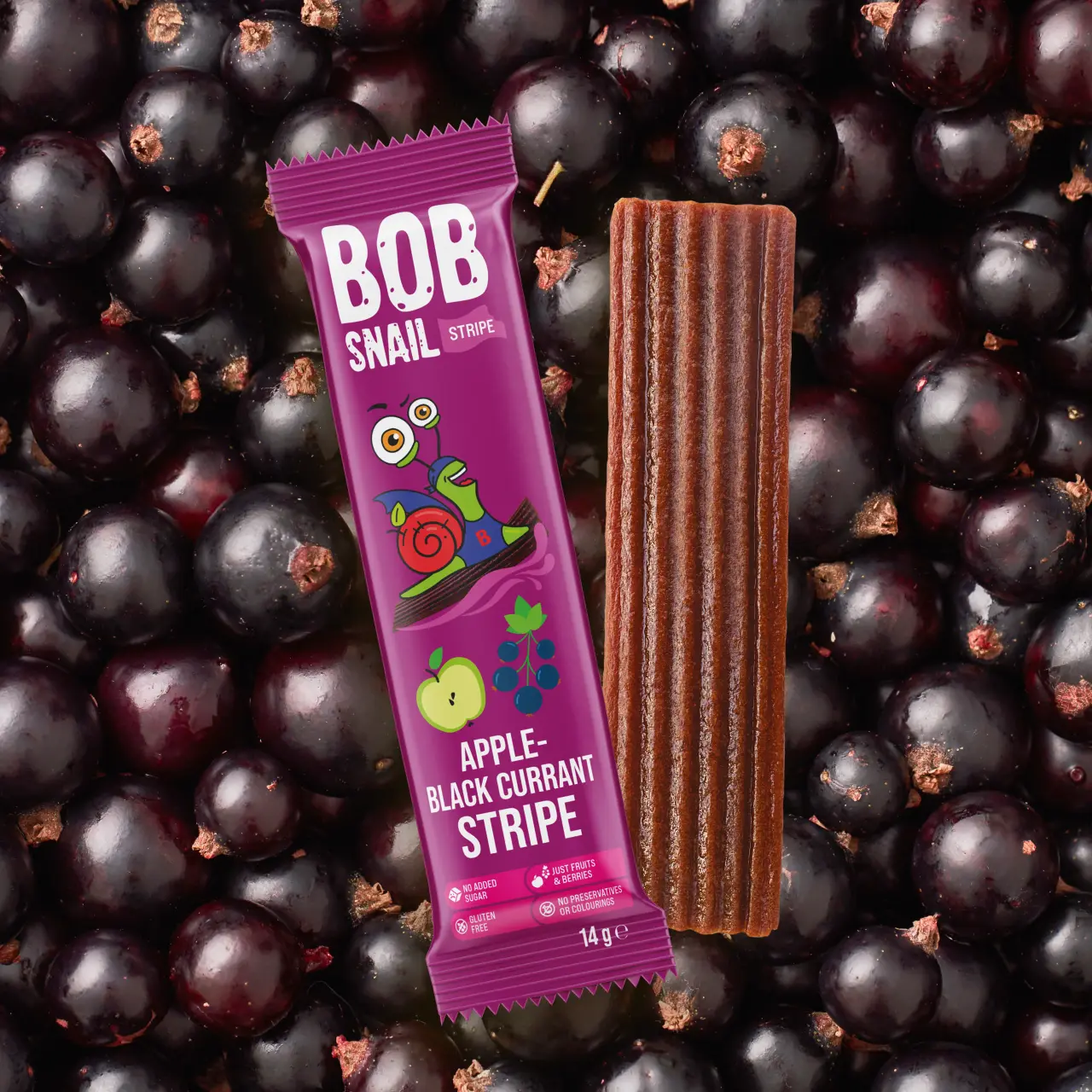 Fâșii din fructe: mere și coacăze negre 14g