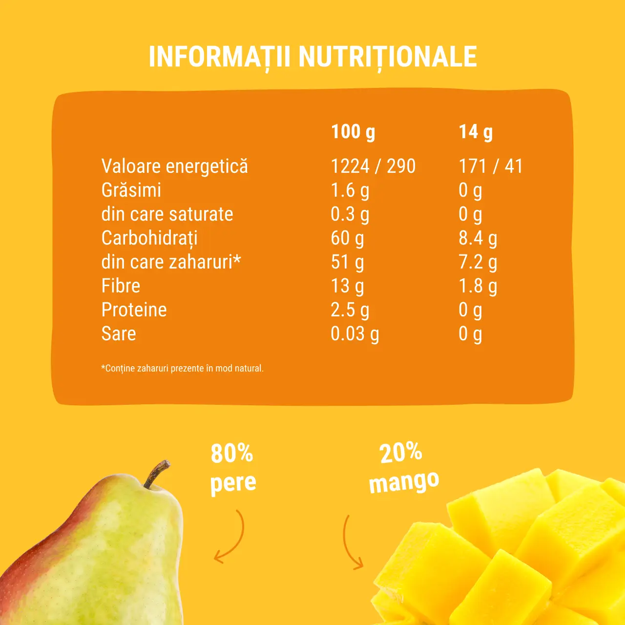 Ingrediente: pere 80%, mango 20%.