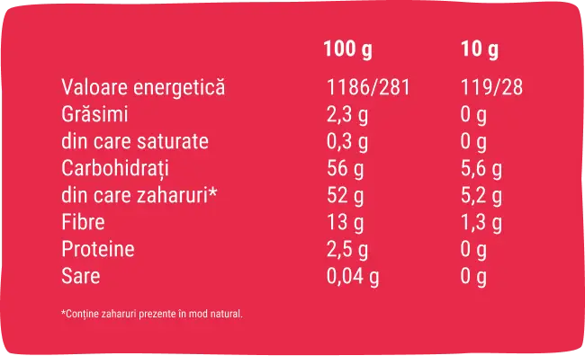 Rulourile sunt gustări realizate din fructe adevărate, fără zahăr adăugat, conservanți, coloranți, gluten, OMG-uri sau lactoză. O alegere excelentă atât pentru adulți, cât și pentru copii. O gustare practică oriunde — în deplasare, la școală sau la muncă.