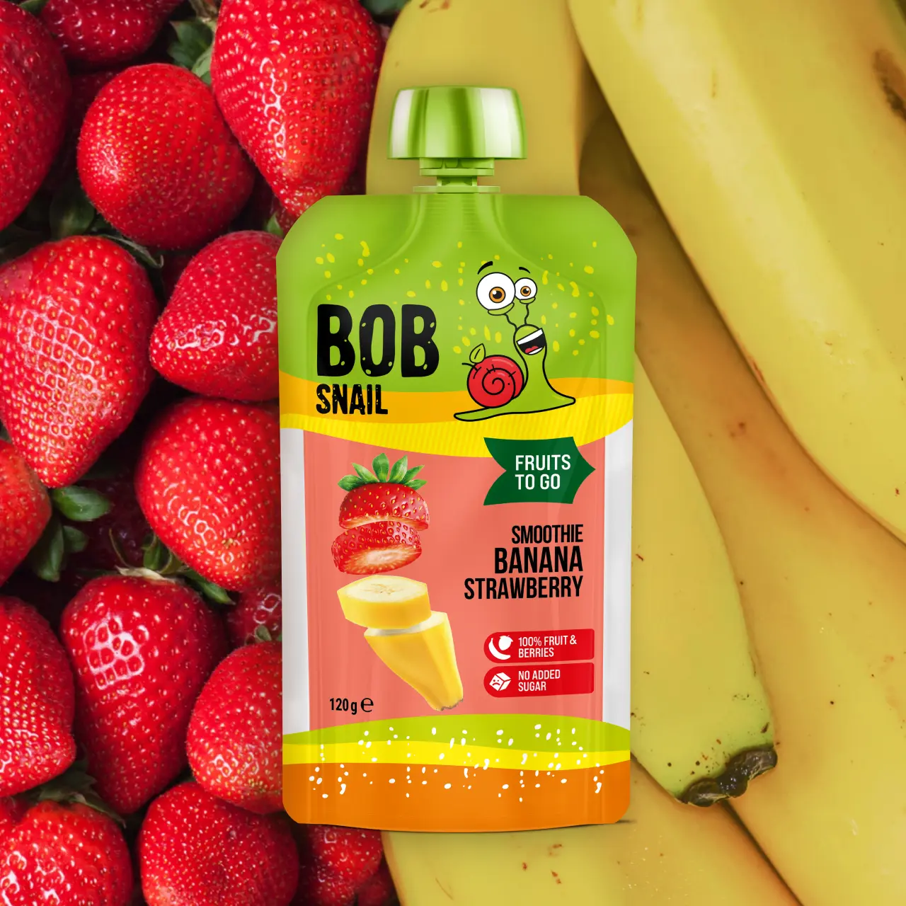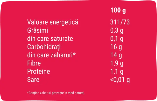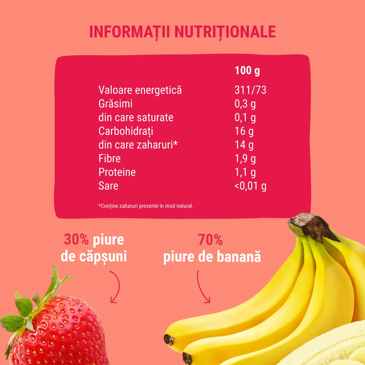 Ingrediente: piure de banană 70%, piure de căpșuni 30%.