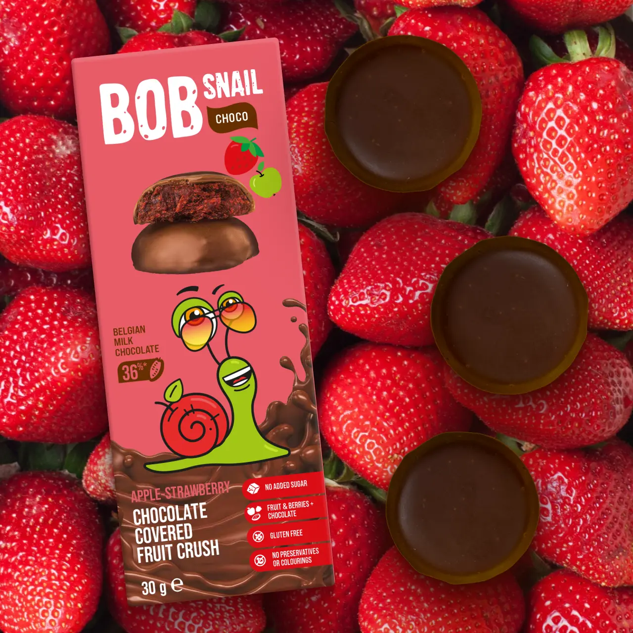 Ingrediente: umplutură de fructe (77%): măr 61,6%, căpșuni 15,4%; ciocolată cu LAPTE (23%): fibre alimentare(oligofructoză), unt de cacao, LAPTE praf, LAPTE praf degresat,masă de cacao, emulsifiant:lecitine de floarea-soarelui, aromă naturală de vanilie, îndulcitor: extract de ștevie.