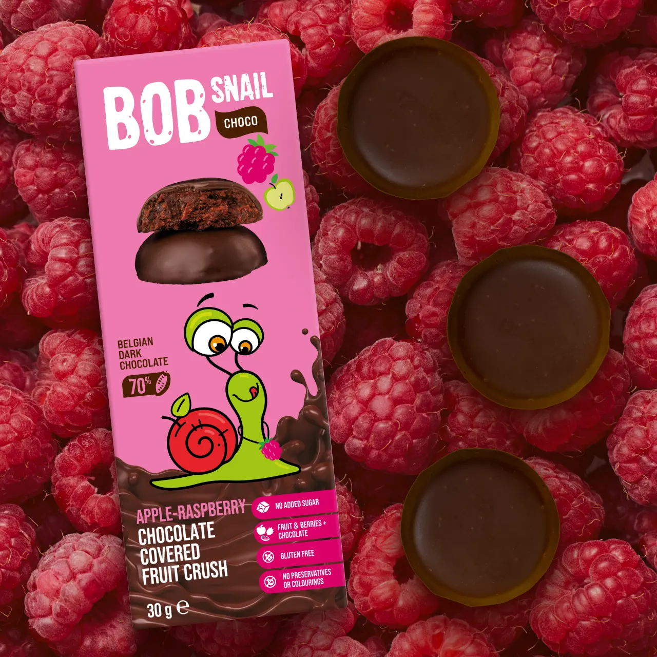 Bomboane din fructe în adevărată ciocolată belgiană. Fără zahăr adăugat, conservanți, coloranți și gluten.