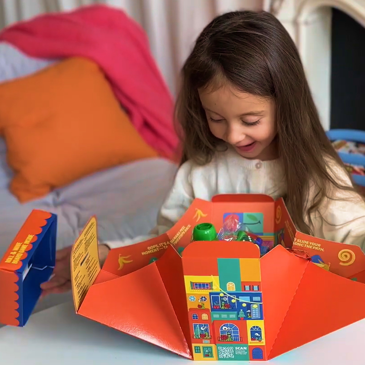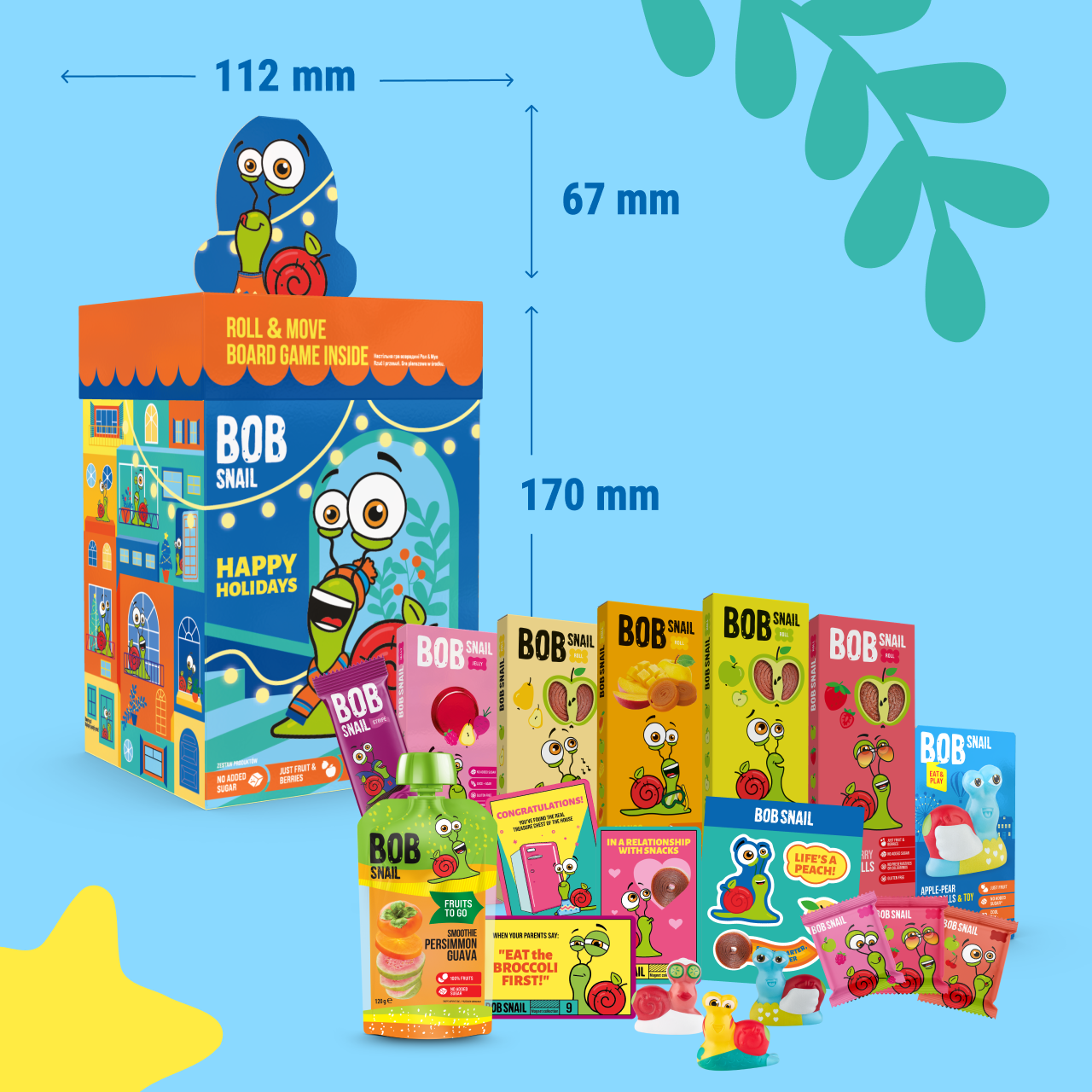 Великий Різдвяний бокс — безпрограшний подарунок на зимові свята. Чарівна коробка перетворюється на настільну гру та містить: фруктові смаколики, Eat&Play з колекційною іграшкою Равлосіті, 3D-стікерпак, магніти на холодильник.