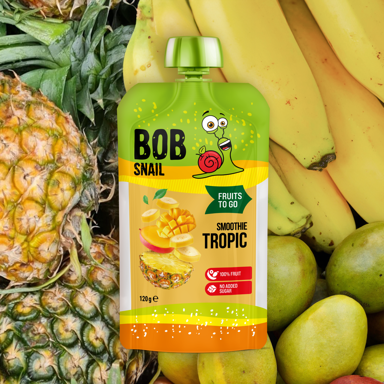 Склад: пюре з банану 50%, пюре з ананасу 25%, пюре з манго 25%.