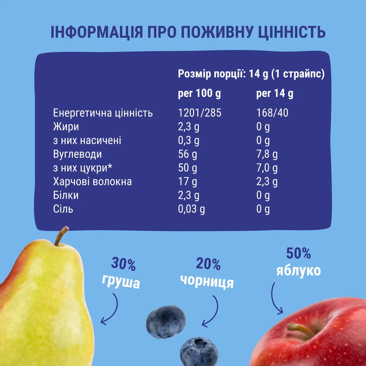Фруктовий страйп “Яблуко-Груша-Чорниця” 14г