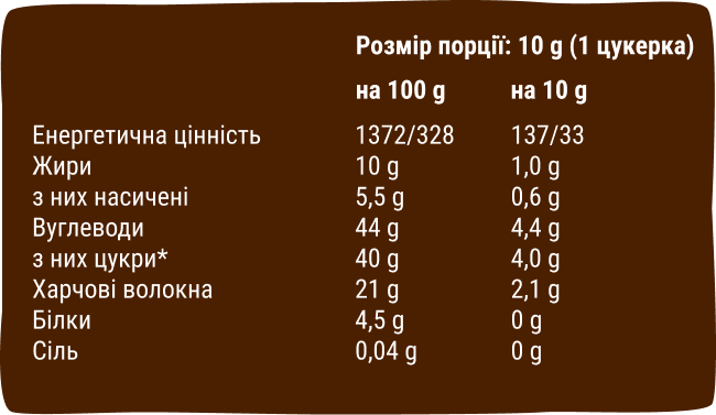 *Мінімальний вміст какао-продуктів в шоколаді – 70%.