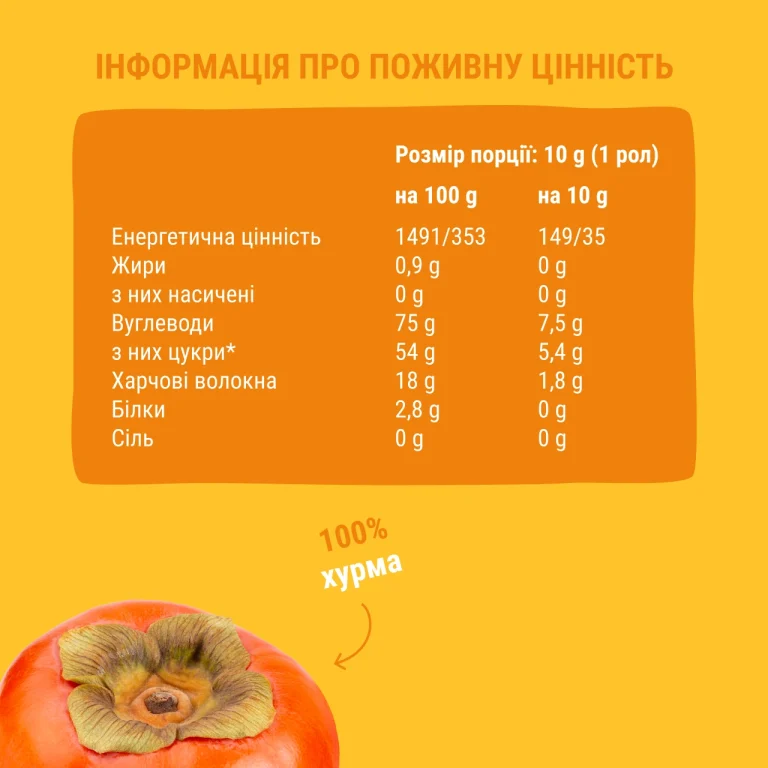 Роли виготовлені з фруктів і ягід без доданого цукру. Вони не містять основних алергенів: арахісу, горіхів, молока, яєць, сої, пшениці, риби, молюсків і кунжуту. Без глютену та штучних домішок. Всього 2-3 інгредієнти і нічого зайвого!