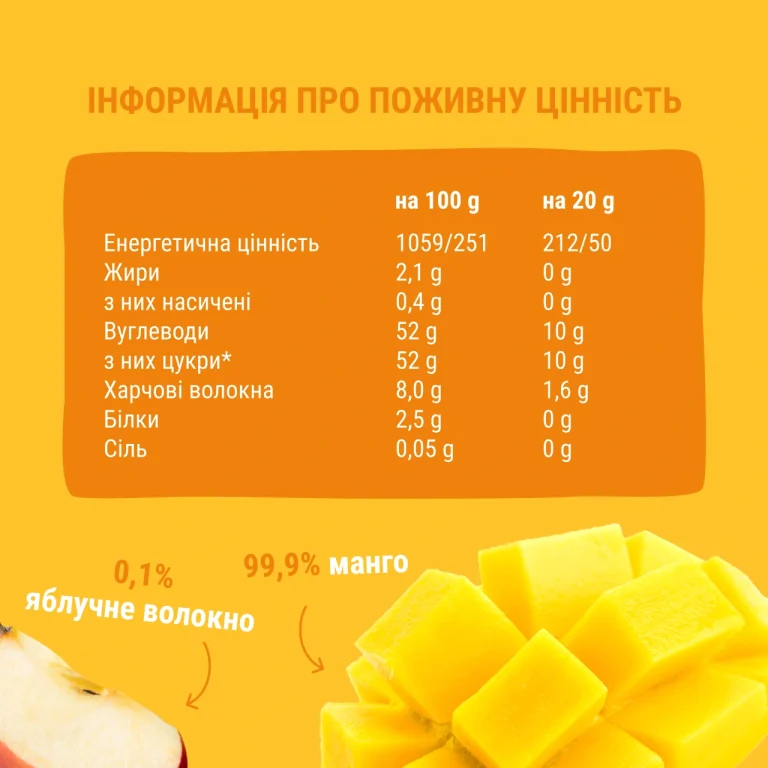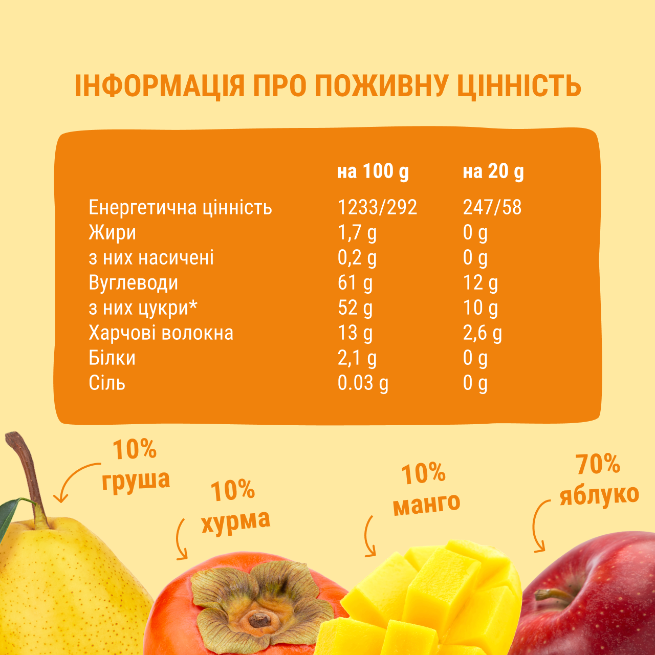 Склад: яблуко 70%, груша 10%, хурма 10%, манго 10%.